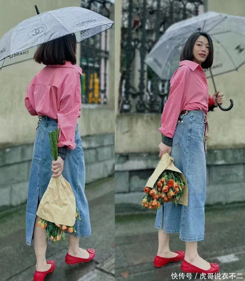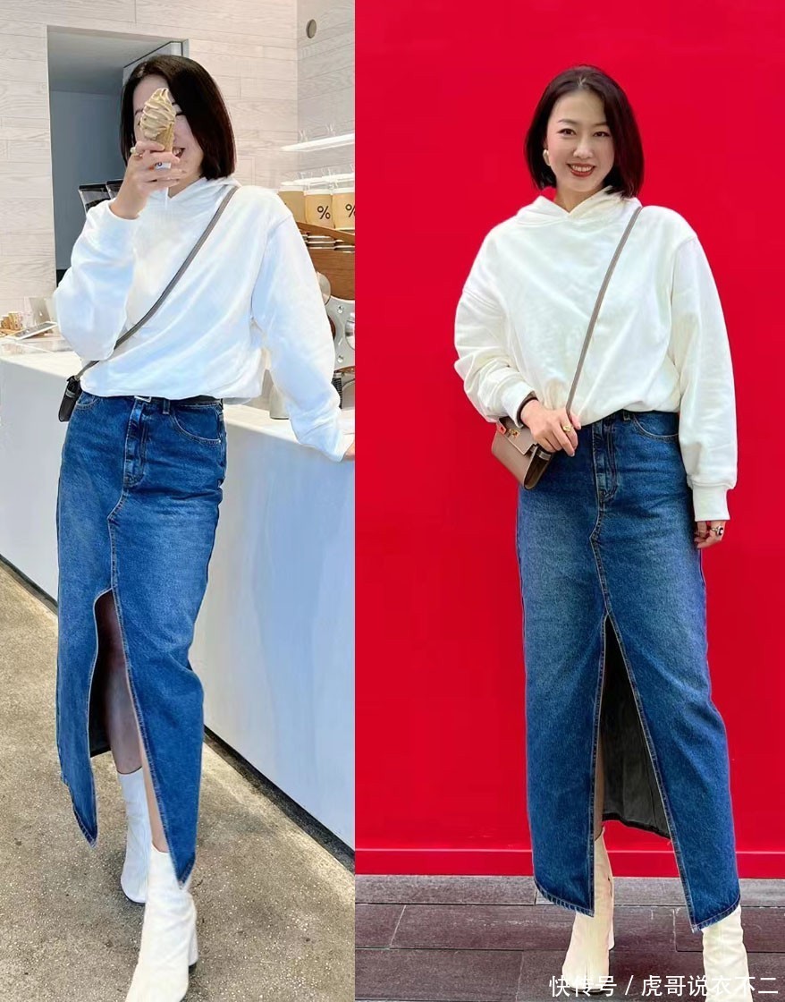 像上图这件牛仔裙,面料的鄙俗感,反而丰富了裙子的气派筹谋,使造型会通进了多少的帅懊丧围感,中年女性穿起来也会更有范。