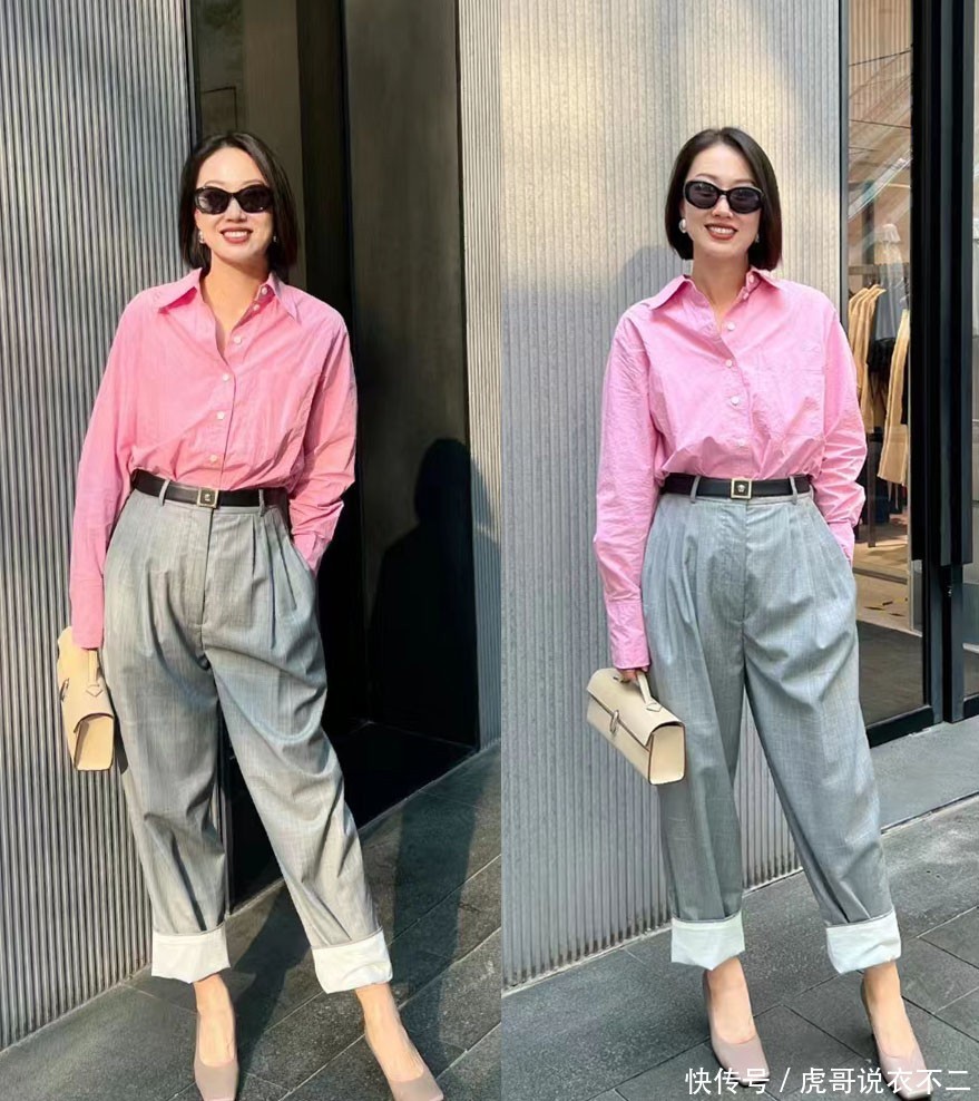 ug环球直营网举例上图这件粉色的衬衫,就取舍汇注了浅灰色西裤,创造出了兼顾干练感与慈祥感的通勤装饰,也使女性千里淀出了气质中的在意气味。