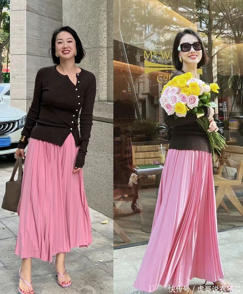 关于自身前卫感不凸起的女性,穿搭不仅要持重亮眼效能,同期也需要保留更稳妥的独霸感。以图中这件粉色半身裙为例,散漫出的柔好意思感很是凸起,但其娇嫩青娥的气派,也需要期骗玄色开衫,才气压制它在视觉上的呈现效能,幸免产生装嫩的问题。